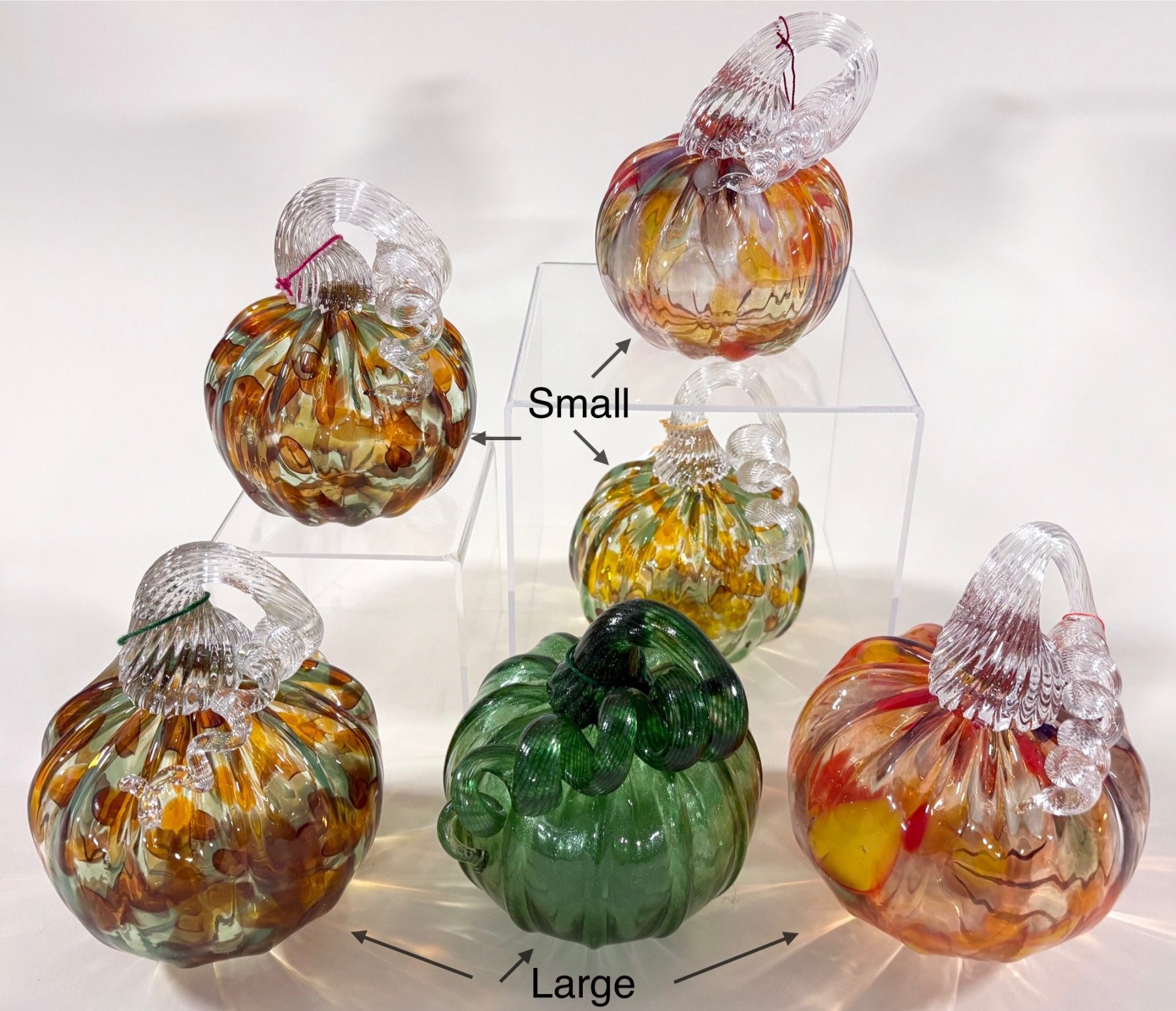 Pumpkins made from hand-blown glass by artist Amy Springer of Red Cloud, NE.