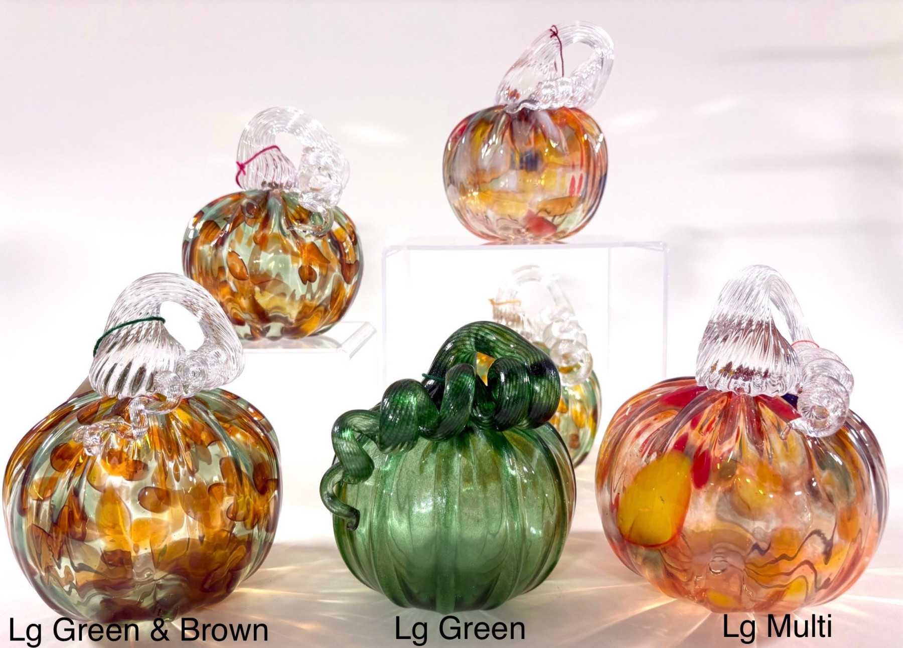 Handmade by local artist, Amy Springer from Red Cloud, NE. Decorate with these sparkling, glass pumpkins! They are perfect for autumn and beyond!